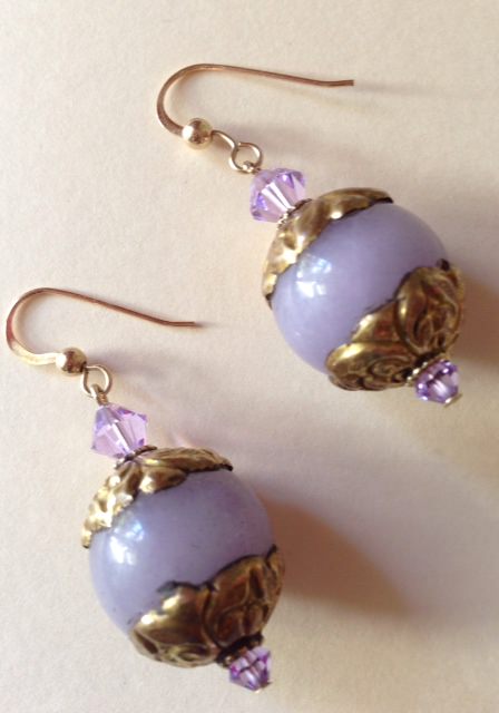 Lavender Jade, Swarovski crystal earrings, 14 kt gf gold earwires, $ 45.00 includes FREE shipping within mainland U.S.A.